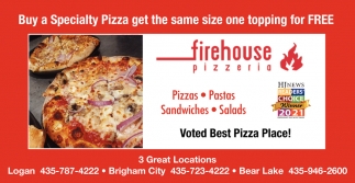 Buy A Specialty Pizza Get The Same Size One Topping For Free Firehouse Pizzeria Logan Ut
